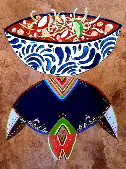 60x40 cm, acrylique et huile sur papier amate, 2021. Série Gastronomie🌽Mexicaine