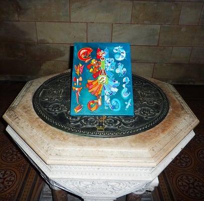 cosmovisiĂłn de su cultura, uniendo con franjas bordadas en plumeado, los sĂmbolos del origen del mundo, la vida y la muerte.